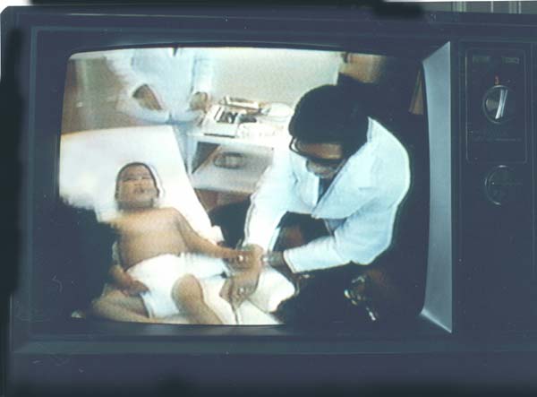 * Mr. David Louie explaining the procedure Dr. DaRen Chen is performing.
